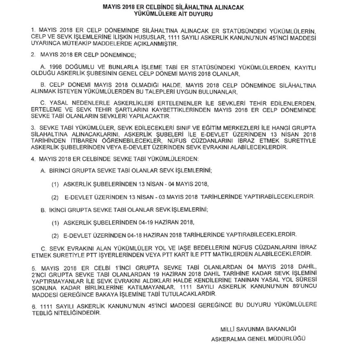 MAYIS 2018 ER CELBİNDE SİLAHALTINA ALINACAK YÜKÜMLÜLERE AİT DUYURU