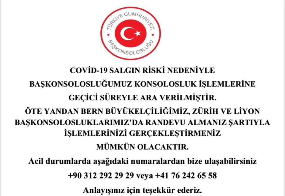 ÖNEMLİ DUYURU / BAŞKONSOLOSLUĞUMUZ KONSOLOSLUK İŞLEMLERİNE GEÇİCİ SÜREYLE ARA VERİLMESİ HK.