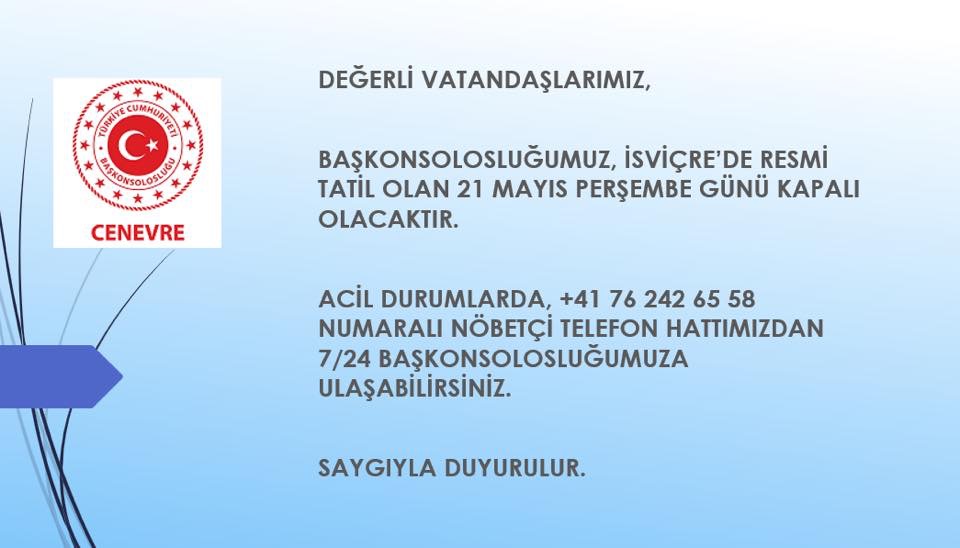 21 MAYIS / RESMİ TATİL DUYURUSU
